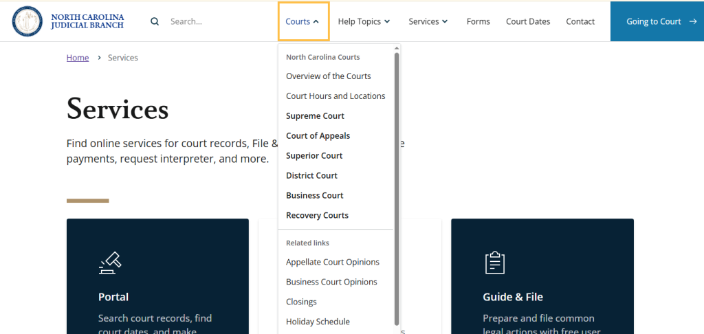 - Website: https://www.nccourts.gov/services/